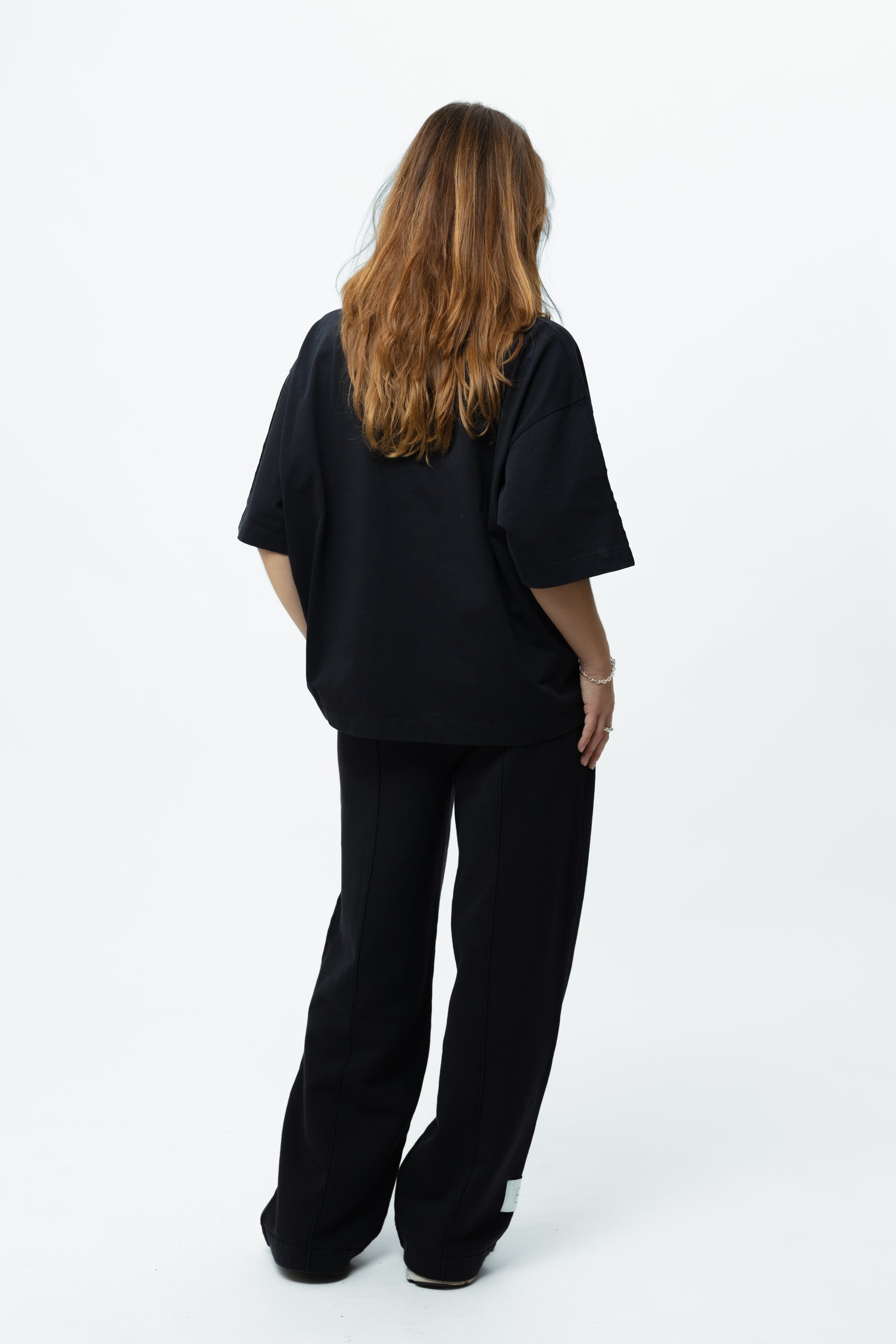 boxy-cut heavyweight t-shirt crafted from 295 GSM organic cotton for a substantial feel and premium durability. featuring a relaxed boxy fit and a distinctive pintuck seam detail. made responsibly in portugal.